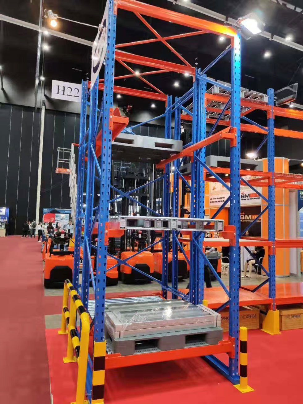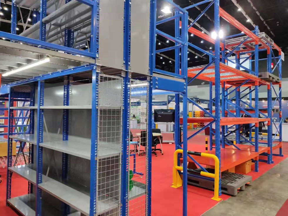 由公司外貿部同事參加2019年泰國曼谷國際物流展,參展展品有重型貨架、貨架平臺、穿梭式貨架、流利式貨架等?;I備工作已完成,今天展會正式開始,為期3天8.29-8.31。